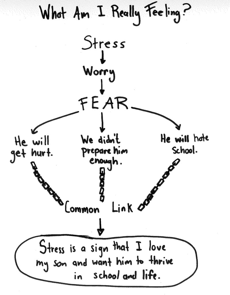 After over-stressing about my son’s first day of school, I introspected: What was I actually feeling? You could plot my emotions and thoughts like this: