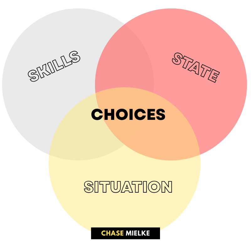 Behavioral choice = Skills available + Emotional & physical state + Situational context